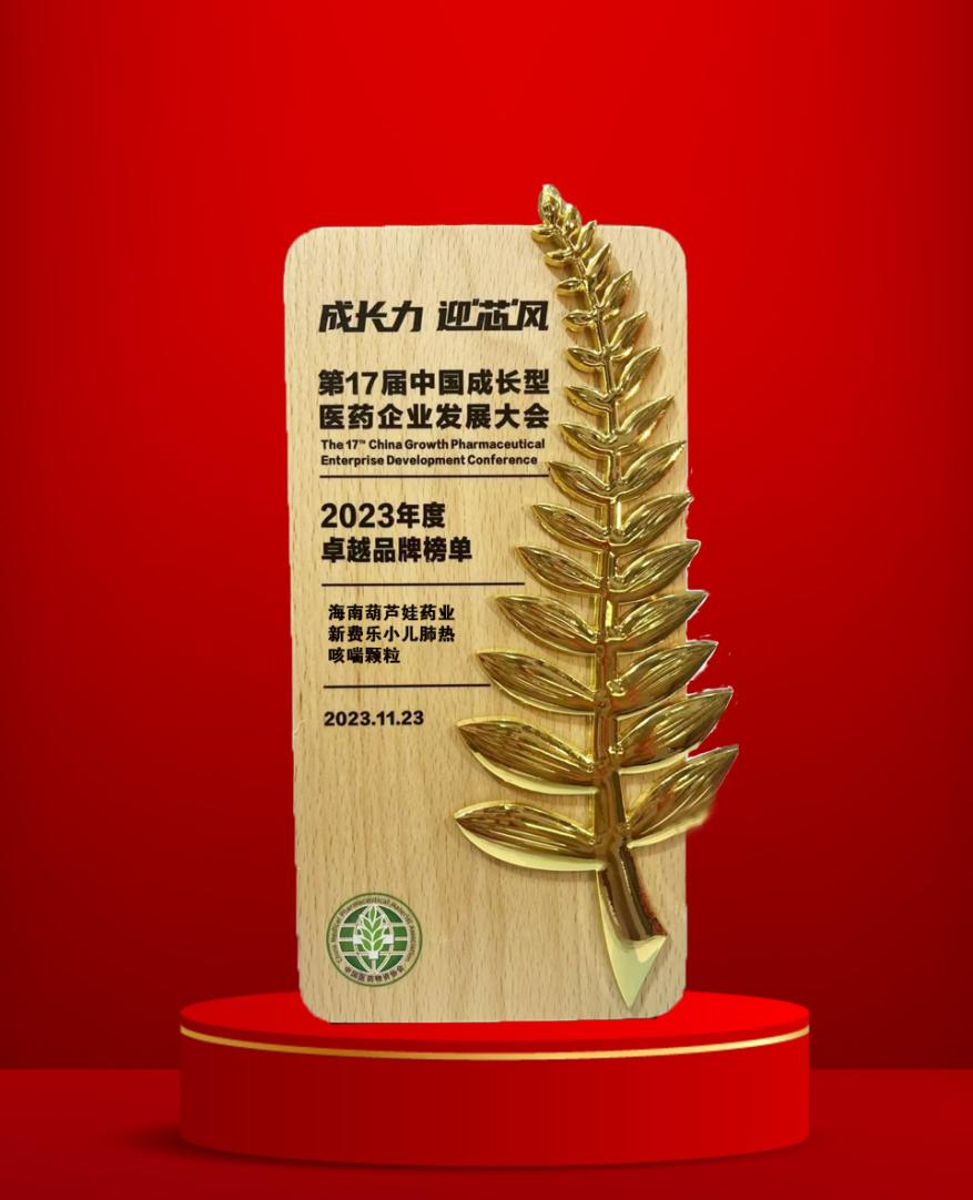 大会期间,一年一度的“金叶奖•2023年度医药行业风云人物奖”榜单重磅揭晓,PG国际药业集团党委书记、董事长刘景萍荣耀上榜。金叶奖是为了表彰广大医药企业家或企业为行业茁壮发展做出的卓越贡献而设立的奖项,“金”象征着品质、品牌、影响力,“叶”象征着生命、健康、成长力。金与叶结合,有“敬业、兢业、竞业”之意。此外,集团黄金单品新费乐®小儿肺热咳喘颗粒凭借卓越的产品质量和品牌影响力赢得了行业、市场和消费者的肯定,获得了“2023年度卓越品牌奖”。